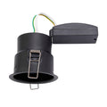 IP65. Suitable for bathroom zone 2 Suitable for bathroom zone 1 if used in conjunction with a 30MA RCD Fire rated to 30, 60 & 90 minutes Proj: 3mm Dia: 88mm H: 88mm Class 1 Cut hole Dia: 75mm Timber joist certified to 30,60 & 90 minutes I-Joist certified to 30 minutes Steel open web joist to 30 minutes