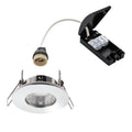 50W GU10 reflector (Required) IP65. Suitable for bathroom zone 2 Suitable for bathroom zone 1 if used in conjunction with a 30MA RCD Fire rated to 30, 60 & 90 minutes Proj: 1mm H: 36mm Dia: 85mm Class 2 Cut hole Dia: 67mm