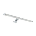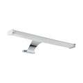 This mirror luminaire of the VINCHIO series is made of chrome-plated steel and white plastic with lateral panels in chrome-plated plastic, and has an protection rating IP44 for bathroom luminaires. The luminaire is attached to furniture wall units or the frame of a mirror by means of the curved holding bracket. The luminaire emits warm white light with an integrated LED-illuminant. The VINCHIO series is available in two different sizes and creates a pleasant atmosphere in warm white light.