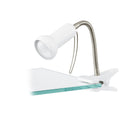 This clamp luminaire from the series FABIO is made of white steel and silver plastic and is operated by a cable switch. It has protective insulation and needs an E14-lamp to shine.The ideal lights for your bookshelves: Clamp luminaires in different colours with adjustable cable from the series FABIO.