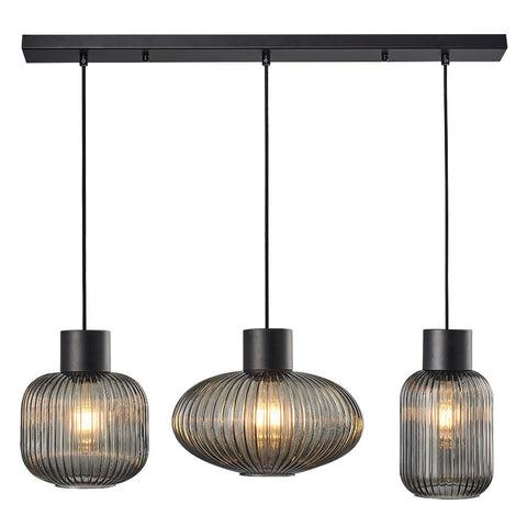 BLACK with RIBBED SMOKED GLASS SKYTECH PENDANT