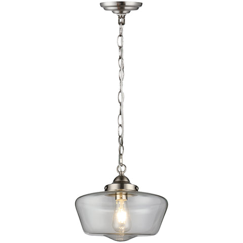 SATIN NICKEL/ CLEAR GLASS SCHOOL HOUSE GLOBE PENDANT