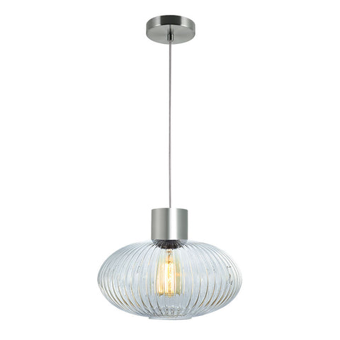 SATIN NICKEL with RIBBED CLEAR GLASS SKYTECH PENDANT