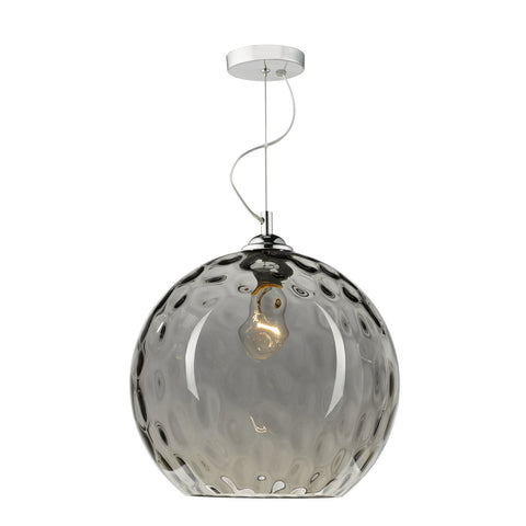 Aulax 1 Light Pendant Silver Smoked Glass With Dimple Effect