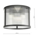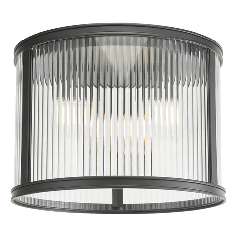 Bianka 3 Light Flush Matt Black and Ribbed Glass