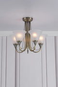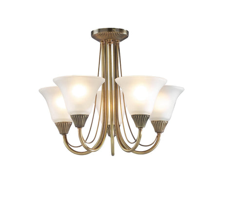 Boston 5 Light Semi Flush Antique Brass Opal Glass