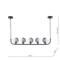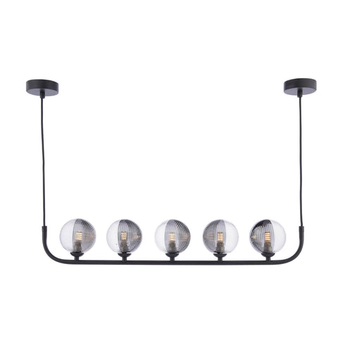 Cradle 5 Light Bar Pendant Matt Black & Smoked/Clear Ribbed Glass