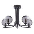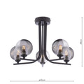 Cradle 5 Light Semi-Flush Matt Black & Smoked/Clear Ribbed Glass