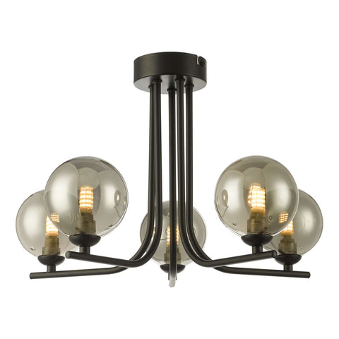Cradle 5 Light Semi Flush Matt Black Smoked Glass
