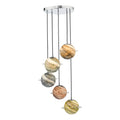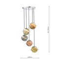 Cygnus 5 Light Cluster Pendant Polished Chrome and Planet Style Glass