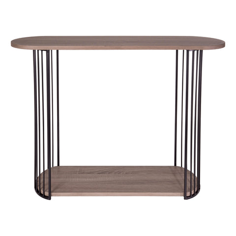 Drum Console Table Oak Effect Veneer and Matt Black