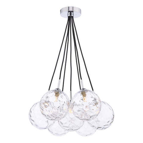 Elpis 7 Light Cluster Pendant Polished Chrome Dimpled Glass