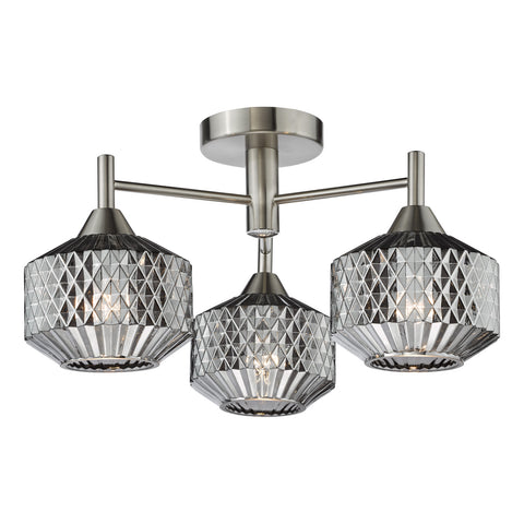Fabrienne 3 Light Semi-Flush Satin Nickel and Smoked Glass