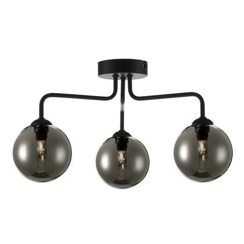 Feya 3 Light Semi Flush Matt Black Smoked Glass