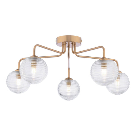 Feya 5 Light Semi-Flush Antique Bronze & Ribbed Glass