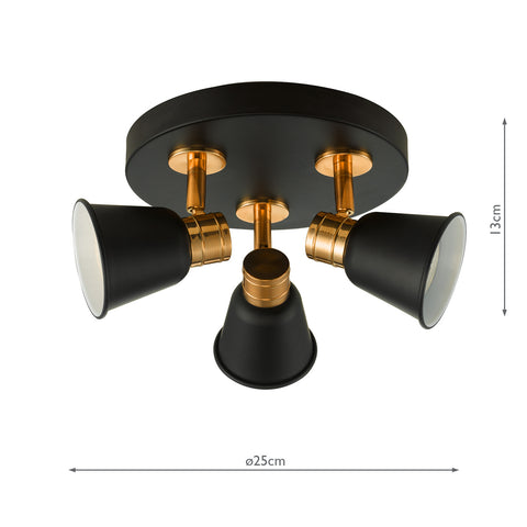 Fry 3 Light Plate Spotlight Black & Rose Gold