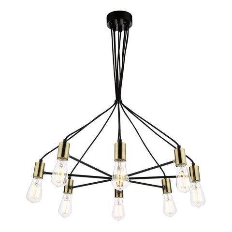 Gabriel 8 Light Pendant Satin Black Antique Gold