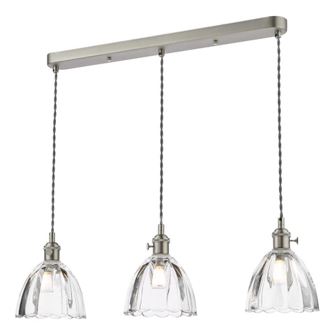 Hadano 3 Light Bar Pendant Antique Chrome and Scalloped Bell Glass