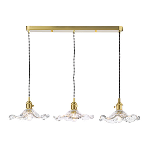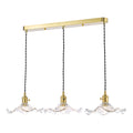 Hadano 3 Light Bar Pendant Natural Brass and Wavy Glass