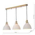 Hadano 3 Light Bar Pendant Natural Brass & Ceramic Domed Shade