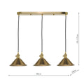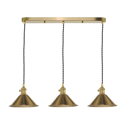 Hadano 3 Light Brass Suspension With Aged Brass Shades