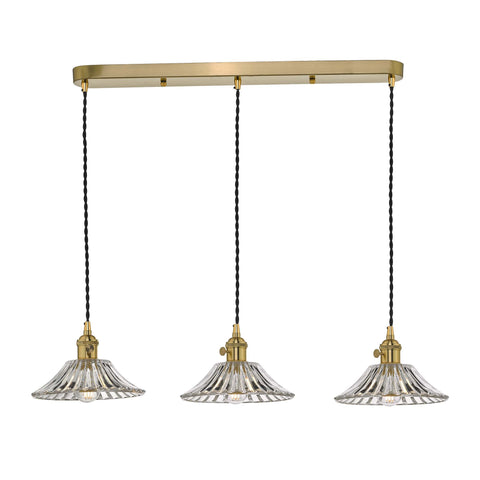 Hadano 3 Light Brass Suspension With Flared Glass Shades