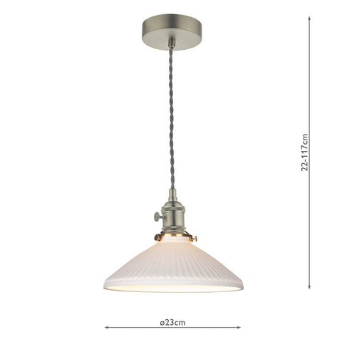 Hadano Pendant Antique Chrome & Ceramic Shallow Shade