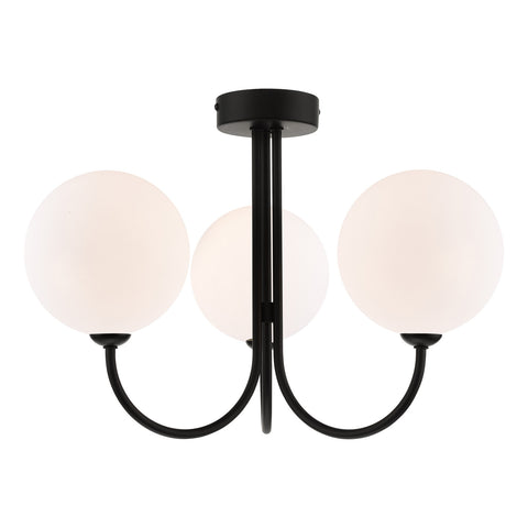 Jared 3 Light Semi-Flush Matt Black and Large Opal Glass