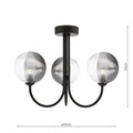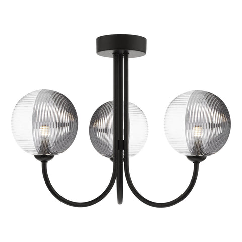 Jared 3 Light Semi-Flush Matt Black & Smoked/Clear Ribbed Glass