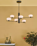 Jasper 6 Light Pendant Matt Black Opal Glass