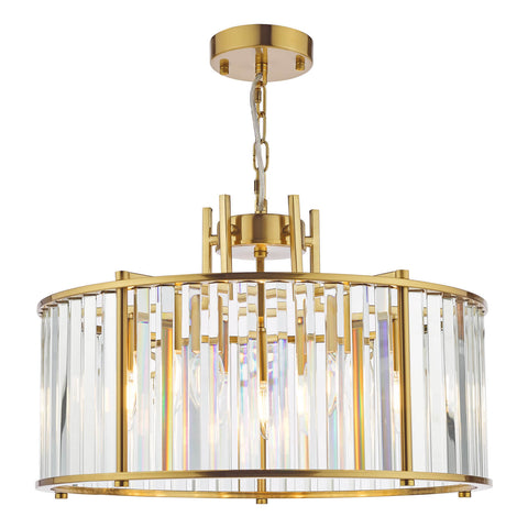 Kiran 5 Light Pendant Natural Brass and Crystal