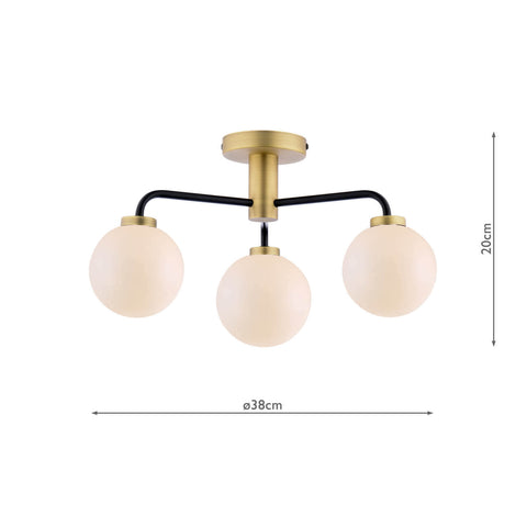 Lainey 3 Light Semi-Flush Matt Black & Opal Glass
