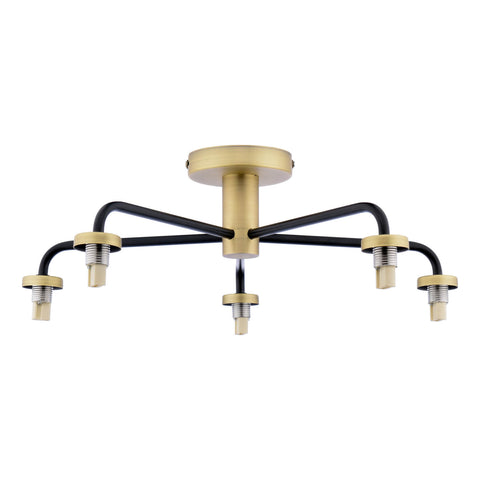 Lainey 5 Light Semi-Flush Matt Black and Antique Brass Frame Only