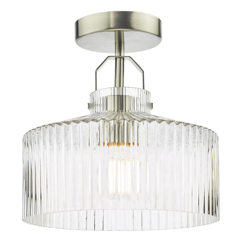 Lenka Semi-Flush Satin Nickel and Ribbed Glass