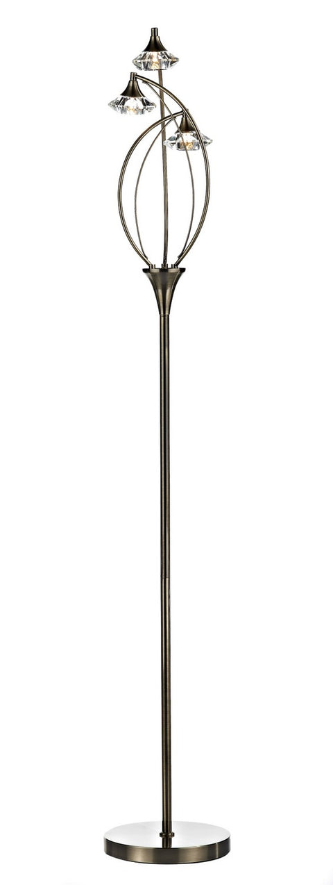 Luther 3 Light Floor Lamp Antique Brass Crystal