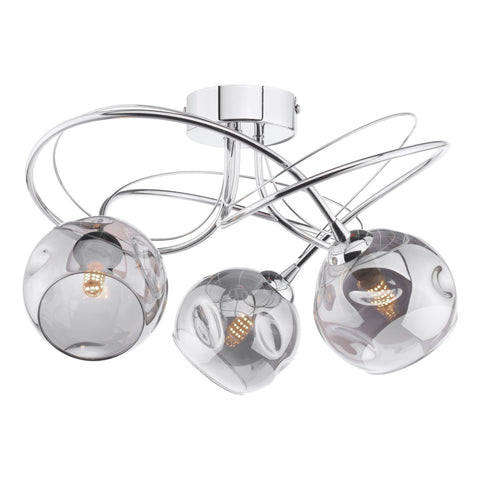 Onawa 3 Light Semi Flush Polished Chrome Smoked Glass