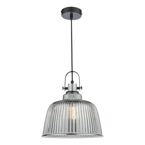 Rhode Single Large Pendant Polished Chrome Smoked Glass