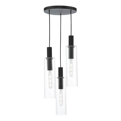 Ruben 3 Light Cluster Pendant Satin Black and Ribbed Glass