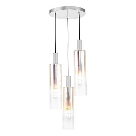 Ruben 3 Light Cluster Pendant Satin Silver and Ribbed Iridised Glass