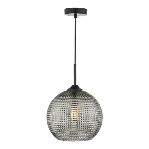 Soren 1 Light Pendant Black And Smoked Textured Glass