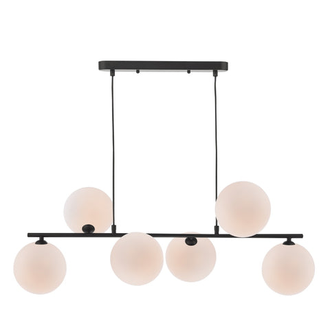 Spiral 6 Light Bar Pendant Matt Black and Opal Glass