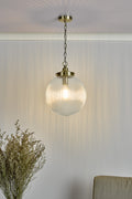 Tamara 1 Light Single Pendant Antique Brass Ribbed Glass