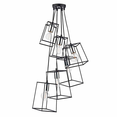 Tower 6lt Cluster Pendant Black & Polished Chrome