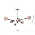 Vignette 6 Light Pendant Matt Black & Planet Style Glass