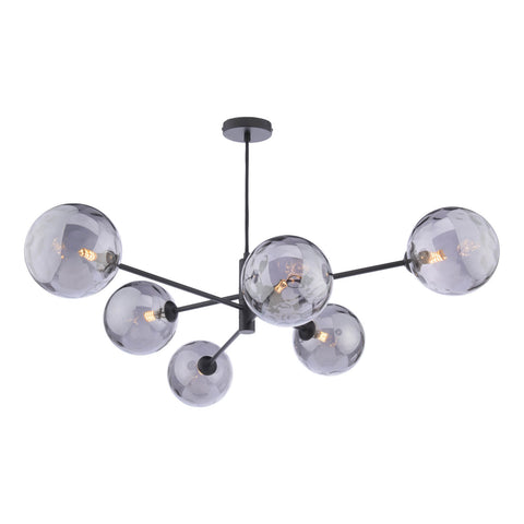 Vignette 6 Light Pendant Matt Black & Smoked Dimpled Glass