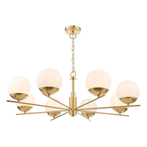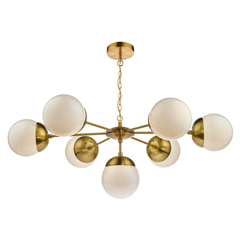 Bombazine 8 Light Pendant Natural Brass Opal Glass
