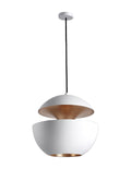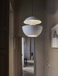 Aluminium pendant lamp. Inspired by the setting sun, it can be arranged alone or in a cluster and is available in several sizes and colours. At first glance, this original lamp looks like all the so-called original lamps. But when turned on, the Here Comes the Sun pendant lamp becomes magical. The night becomes gentle and reassuring.