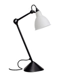 Steel table lamp. Bernard-Albin Gras created the Lampe Gras for industry and design offices. It is remarkable for its ergonomics and the simplicity of its mechanics, which give it a foolproof robustness. Lampe Gras No. 205 was first designed for offices. Its qualities: elegant-graphic-well balanced-playful.