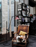 Steel floor lamp. Its qualities: graphic, stable, sophisticated. It is a "must-have" for any self-respecting aesthete.