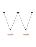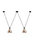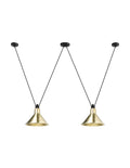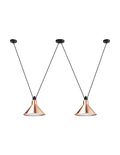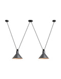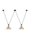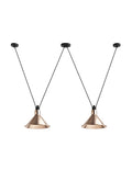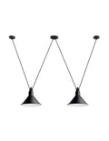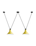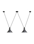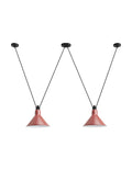 Pendant lamps in cast aluminium and textile cables. Les Acrobates de Gras perform various figures in the air, perched at a height of several metres. The spectacle is bold: in movement, rhythm and colour. The colours and shapes of the Gras reflectors and glass balls (sizes L, XL, Ø175 and Ø250) offer a dynamic and elegant display. Les Acrobates de Gras can be linked together. Each one can perform its number!